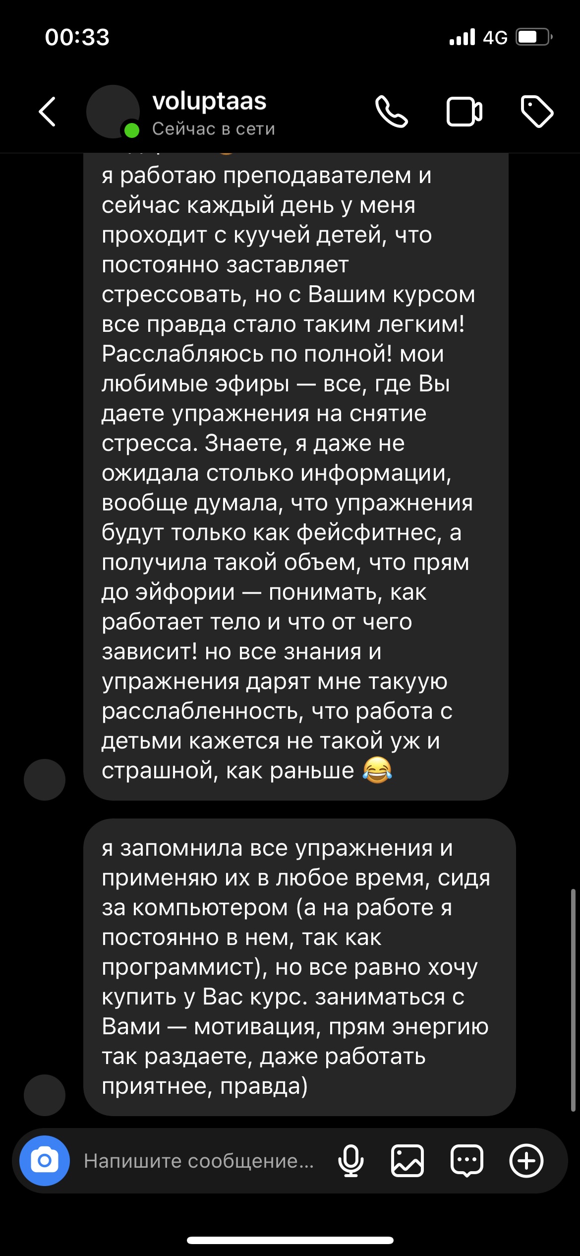 Но свою любовь к прекрасному я воплотила в фейсфитнес, а позже и в фейстерапию, включив в свои занятия телесную терапию. Через телесную терапию налаживается связь с телом. На глубинном уровне тело начинает давать ответы на любые вопросы. 🫶